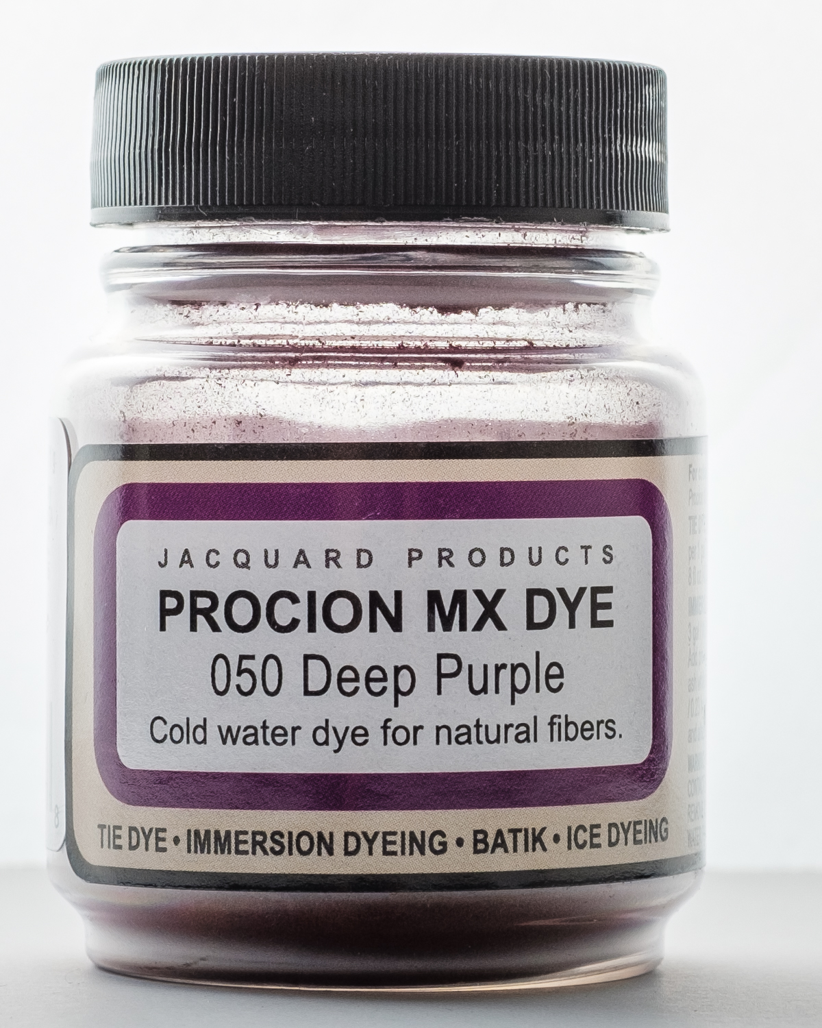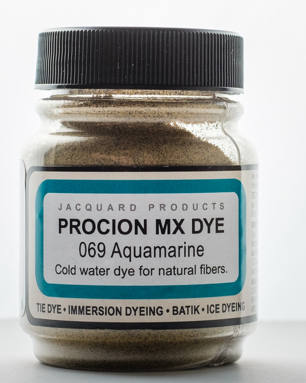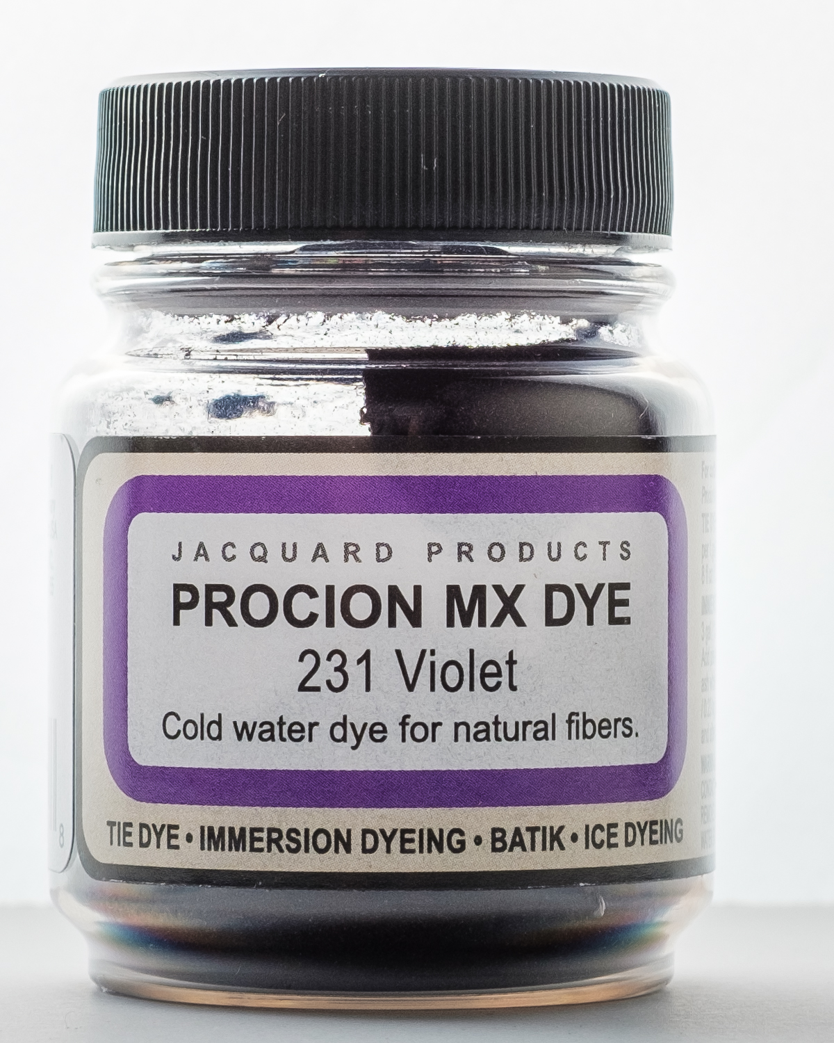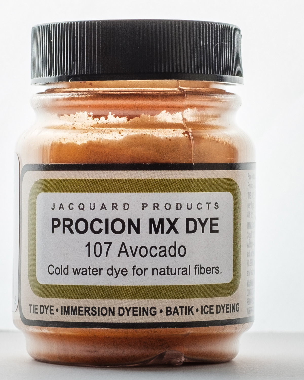 Use this dye for immersion dyeing, tie dye, batik, airbrushing, garment dyeing, screen printing, spatter painting gradation dyeing and more! It is a cold water fiber reactive dye, when added to tap water it is the most vivid of all dyes for cellulose fibers. It will dye all cellulose and some protein fibers. This package contains a 2/3oz jar of dye. Powder solution changes color when adding water. Final result matches bottle label. Available in a variety of colors, each sold separately. Conforms to ASTM D 4236. Made in USA.