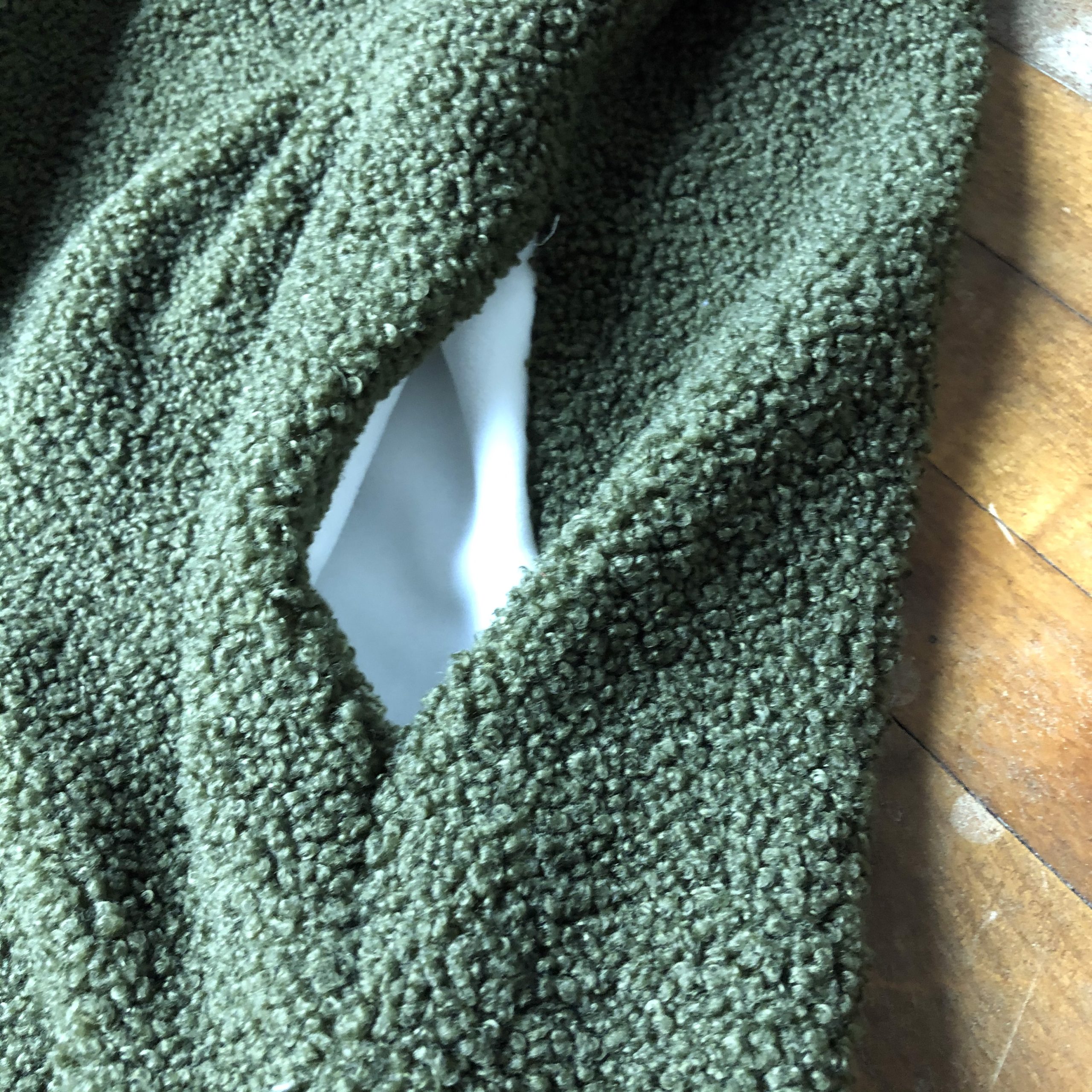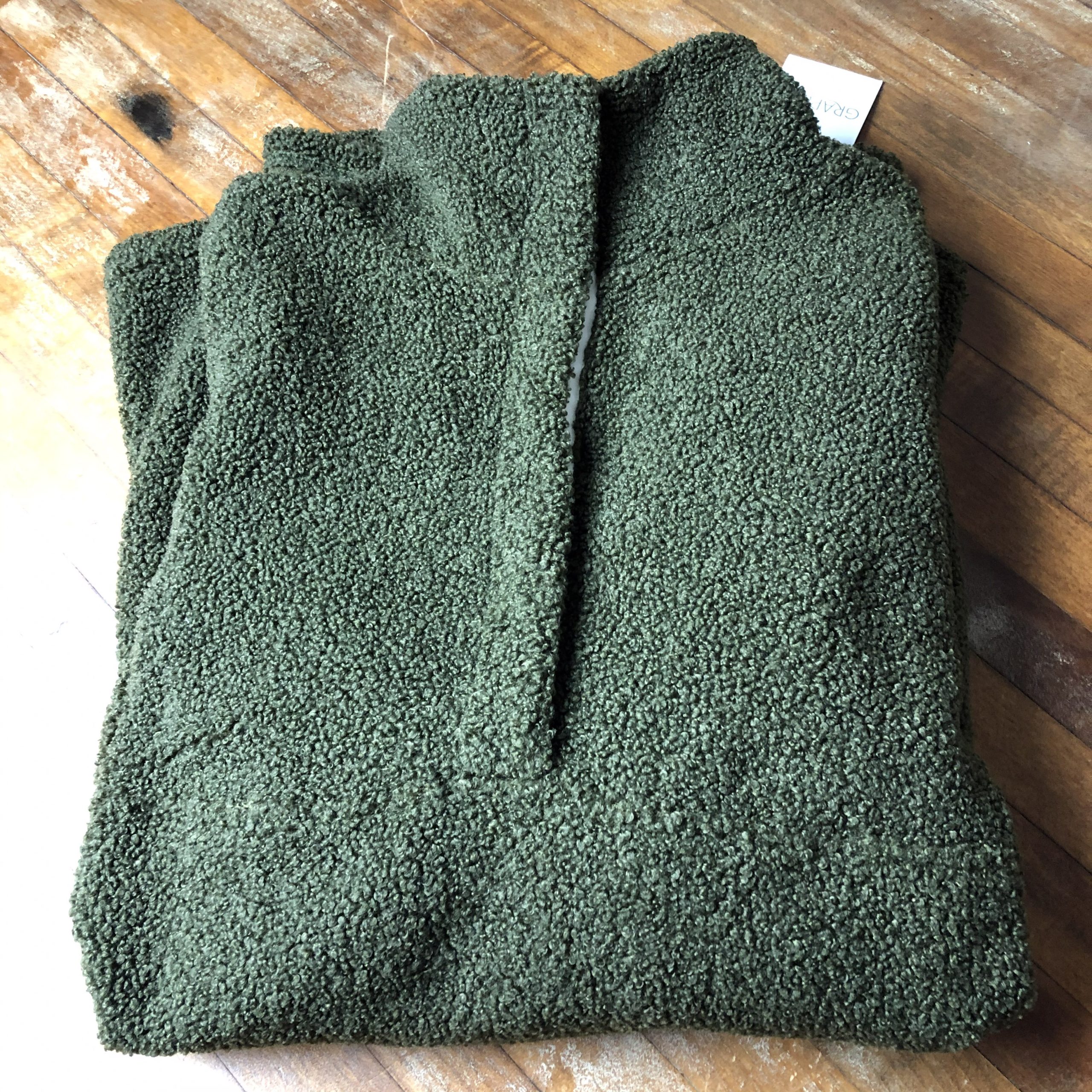 Brand new with tags, never worn Grapent 1/4 Button Pullover fleece top with pockets. The material is a soft fleece, the collar and pockets are lined with a cream colored velour lining.