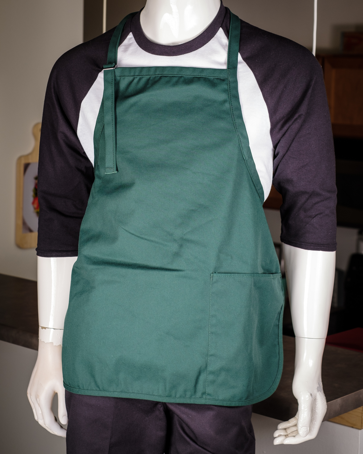 Brand new, never worn. Hunter Green apron with 1 pocket on the front left.