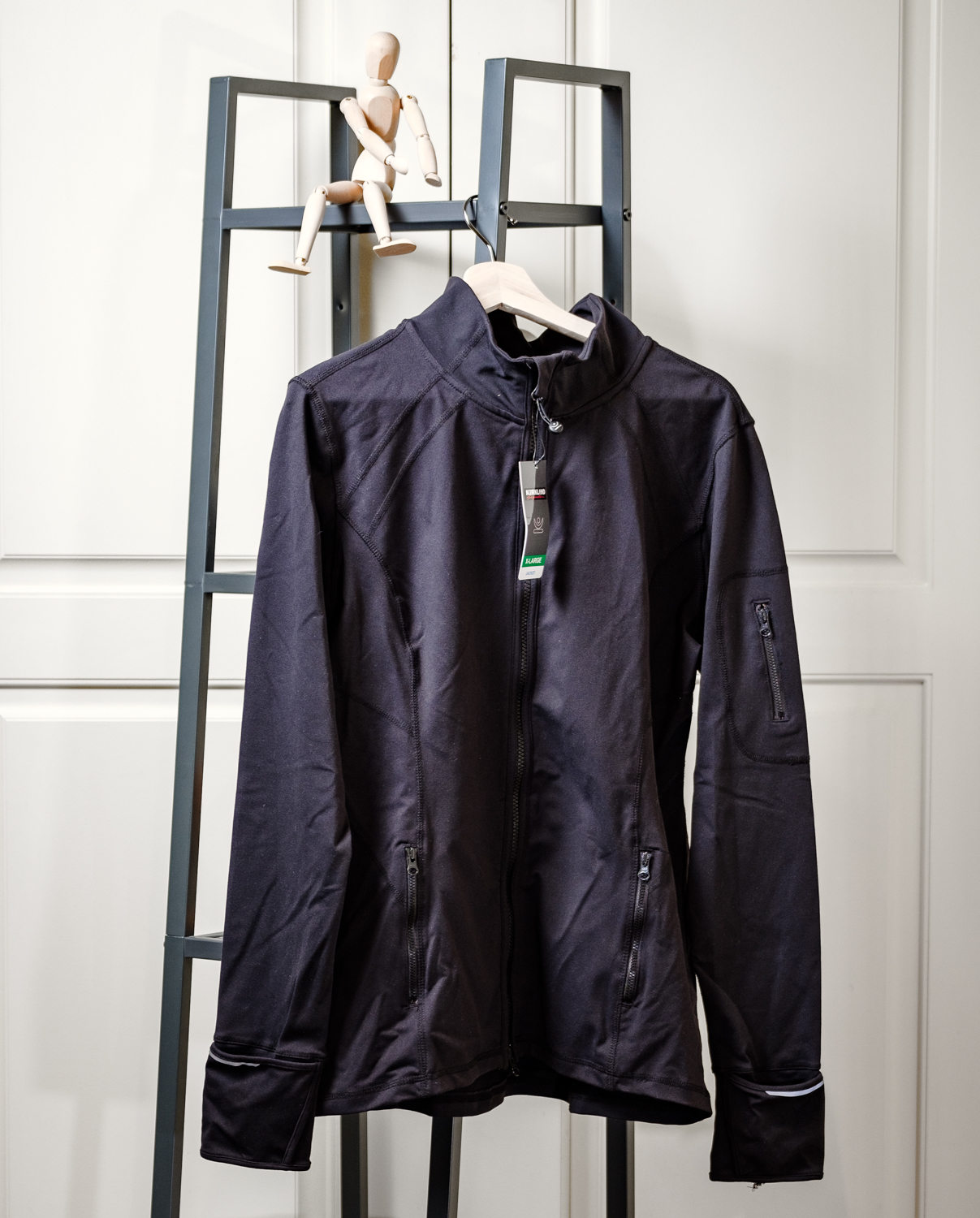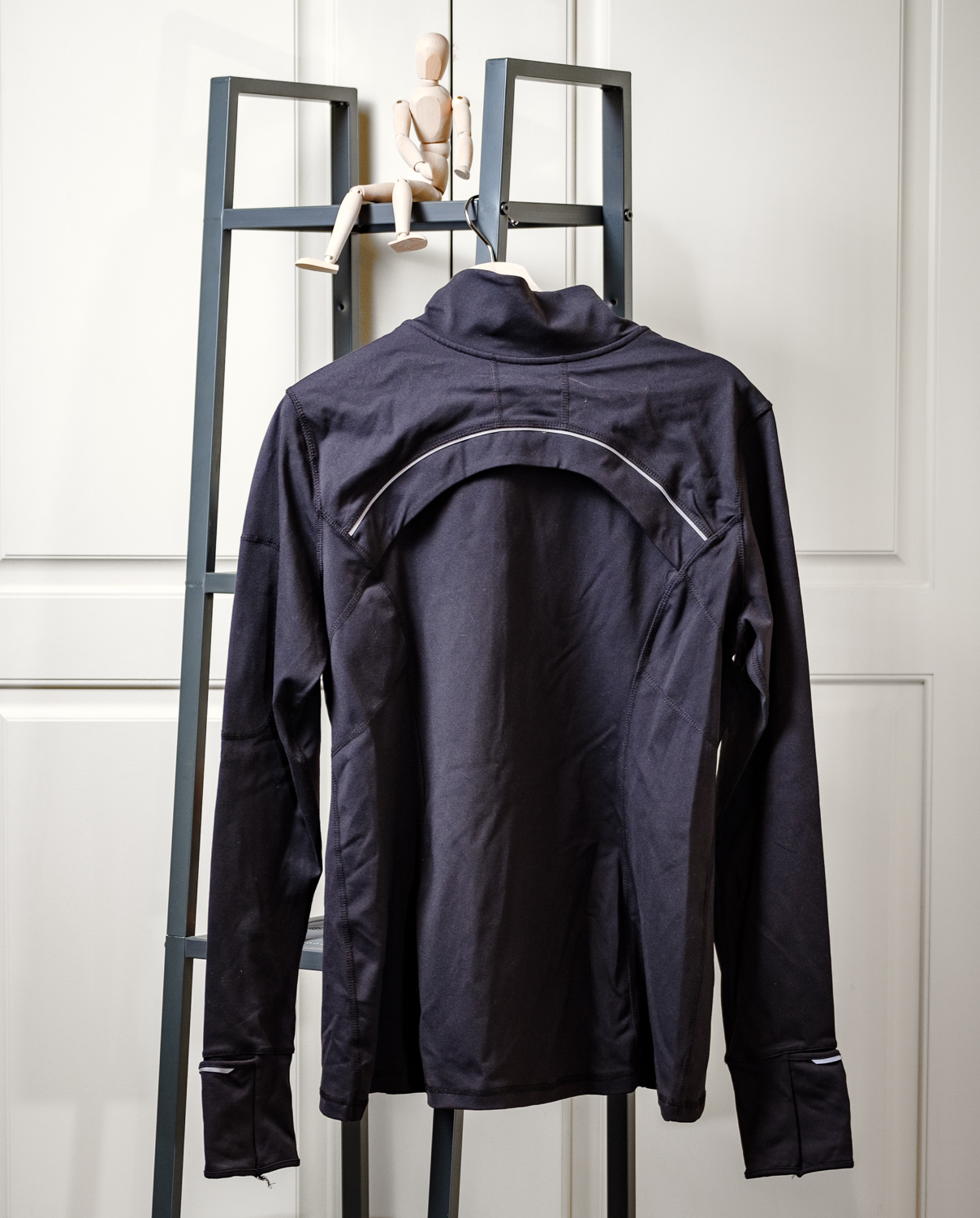 Curved, flat-seamed, double coverstitch provides comfort and prevents chafing. Fabric wicks moisture away from the skin to keep you dry. Center front two way zipper. Mesh lined front zip pockets. Reflective trim at back and cuffs for maximum visibility at night. Zippered arm pocket with media cord management. Hidden back opening for ventilation.